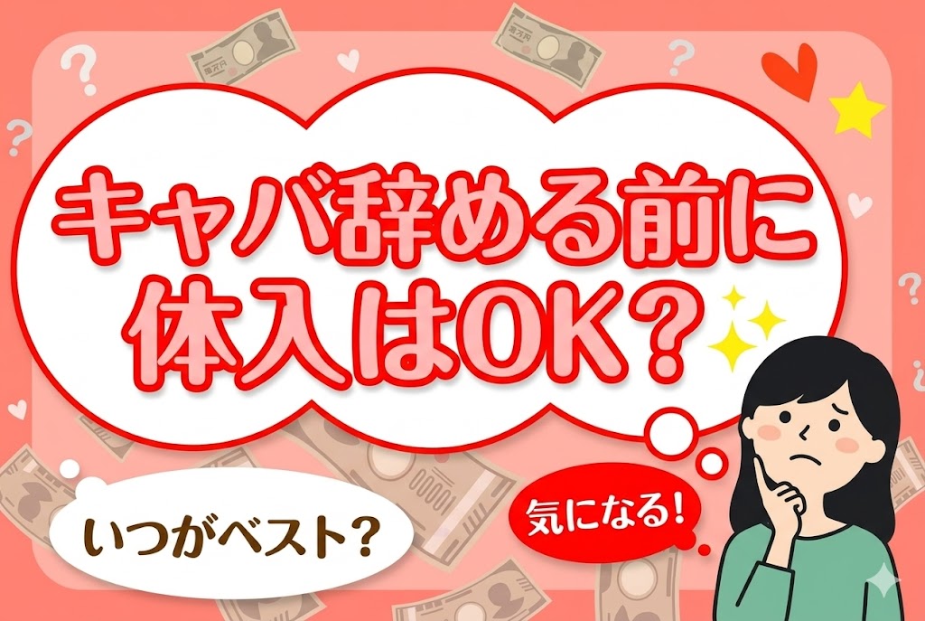 この記事では、辞める前に体入はできるのかという疑問から、在籍中に体入するリスク、他店舗へ移籍する正しい手順、キャバクラの上手な辞め方まで詳しく解説します。